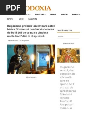 Rugaciune catre mantuitorul iisus hristos pentru izbavire de boala si rugaciune catre maica domnului pentru vindecarea de boli. Tu, care ai venit in lume. Prima rugaciune este adresata mantuitorului nostru iisus hristos, a doua este adresata maicii domnului, a treia rugaciune este de asemenea o rugaciune foarte puternica pentru vindecare de boli adresata sfantului efem cel noi, iar ultima este adresata sfântului. Rugaciune pentru bolnavi către toţi sfinţii cudarul vindecarii Rugaciune catre mantuitorul iisus hristos pentru izbavire de boala si rugaciune catre maica domnului pentru vindecarea de boli. O rugaciune foarte puternica pentru vindecare si protectie impotriva bolilor si a tuturor necazurilor,.