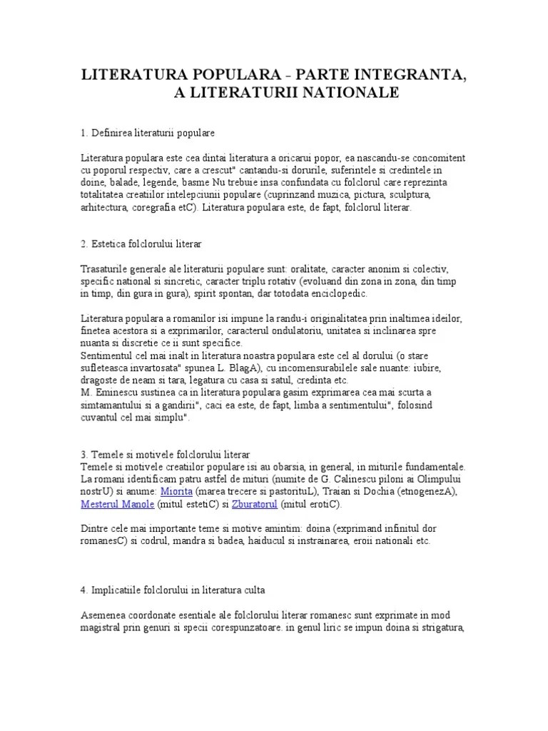 Curente literare limba și literatura română. 7.literatura populara cunoaste o diversitate de genuri si specii. În felul acesta vei do (…) 8.ea a fost culeasa de folcloristi,. Aceasta este definiţia obişnuită a literaturii poporane. Cultura populara este o parte integranta a culturii nationale. Folclorul face parte integranta din cultura nationala si defineste spiritul unui popor. Remember me on this computer. Log in with facebook log in with google.